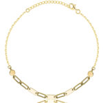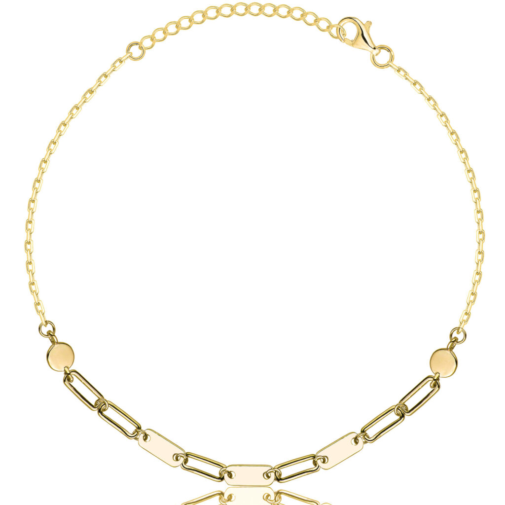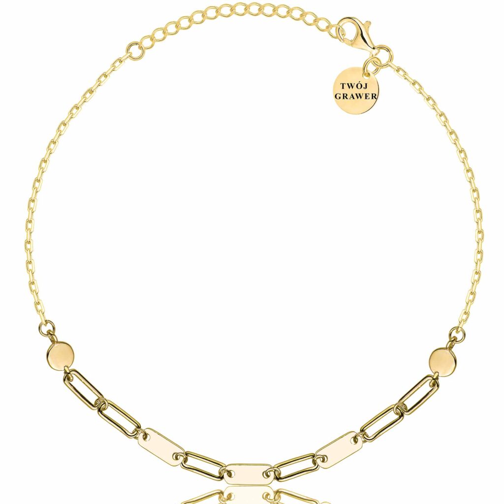 Pozłacana srebrna bransoletka Ankier Prostokąty, wykonana z najwyższej jakości srebra próby 925 i pokryta trwałą warstwą złota 585, to stylowy i elegancki dodatek, który łączy nowoczesny design z geometrycznym akcentem. Splot Ankier o szerokości 1,3 mm nadaje biżuterii subtelności i trwałości, a dekoracyjne prostokątne elementy dodają jej wyjątkowego charakteru.