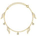 SREBRNA POZŁACANA BRANSOLETKA ANKIER SKRZYDŁA Z CYRKONIAMI 925 585 – 1,1MM