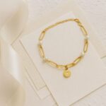 Pozłacana srebrna bransoletka ankier z perełkami i okrągłą zawieszką, wykonana z najwyższej jakości srebra próby 925 i pokryta warstwą złota 585, to elegancka biżuteria, która łączy klasyczne i nowoczesne akcenty. Splot o szerokości 3,3 mm uzupełniają dekoracyjne perełki, nadające całości subtelnego charakteru. Centralnym elementem jest okrągła zawieszka ozdobiona błyszczącą cyrkonią, która dodaje biżuterii wyjątkowego blasku.
