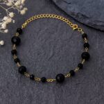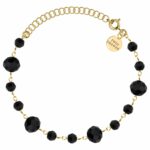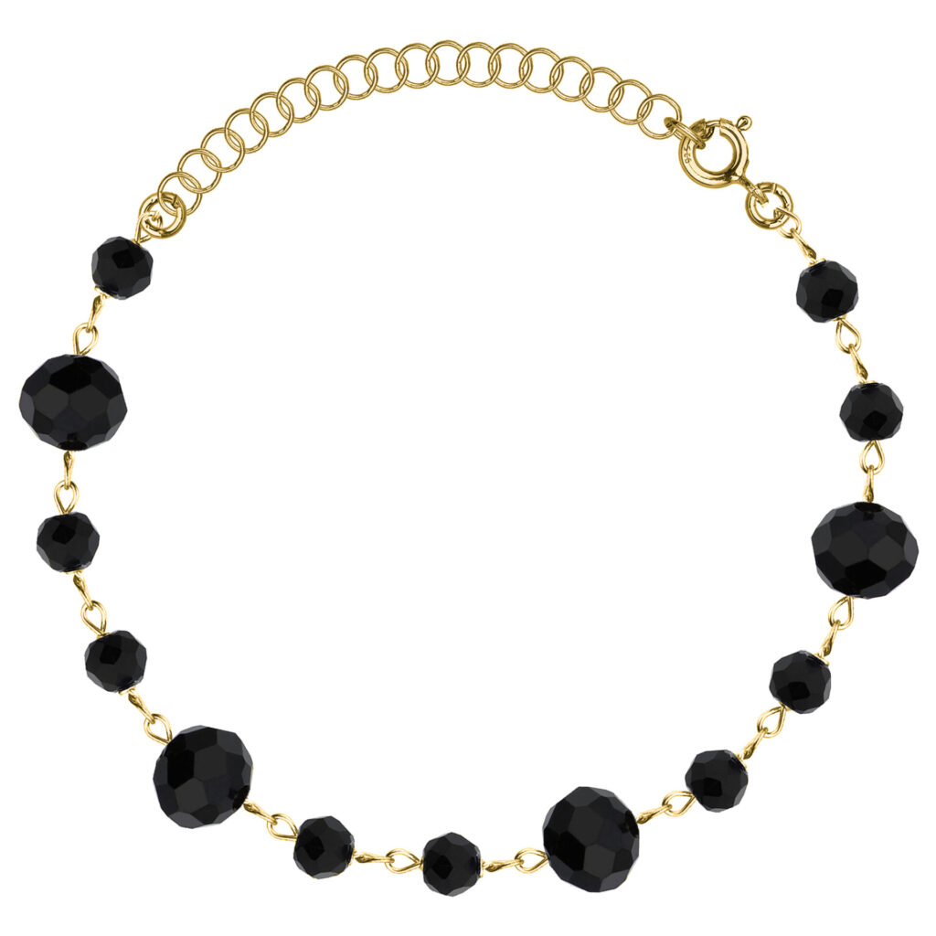 SREBRNA POZŁACANA BRANSOLETKA Z CZARNYMI KAMIENIAMI NATURALNYMI 925 585 – 1,7MM