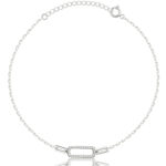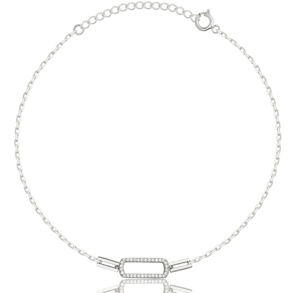 Srebrna Rodowana Bransoletka Ankier Prostokąt z Cyrkoniami 925 – 1,3 mm