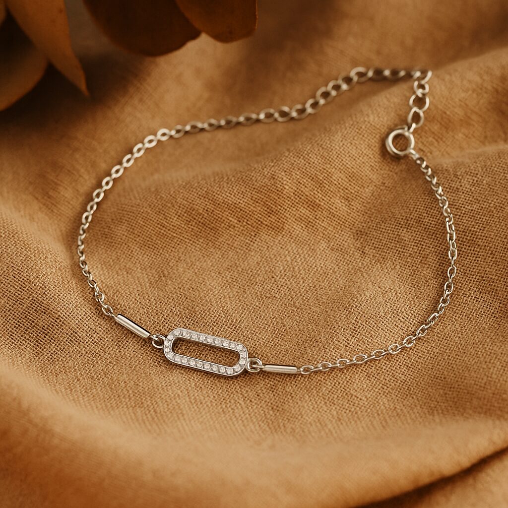Minimalistyczny design bransoletki sprawia, że jest ona uniwersalnym dodatkiem do każdej stylizacji – zarówno casualowej, jak i eleganckiej. Błyszczące cyrkonie subtelnie odbijają światło, dodając biżuterii wyjątkowego charakteru i delikatnej elegancji.