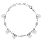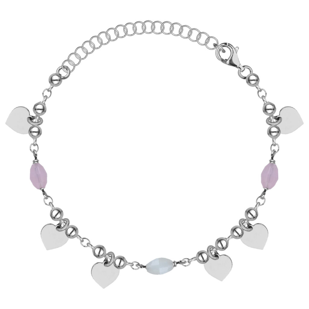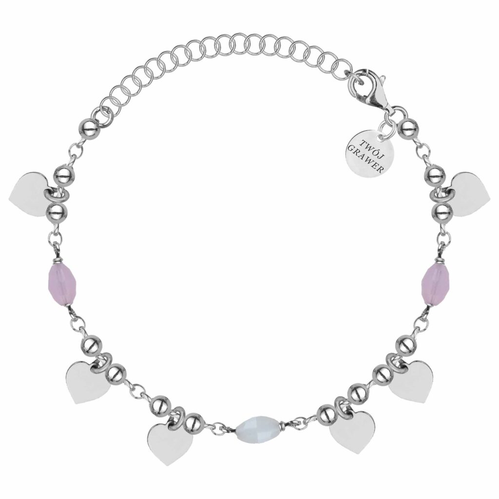 Urocza, lekka i pełna kobiecego wdzięku – ta srebrna rodowana bransoletka typu ankier została ozdobiona zawieszkami w kształcie połyskujących serduszek oraz pastelowymi kamieniami naturalnymi w odcieniach różu i błękitu. Połączenie połyskującego srebra z delikatnymi kolorami nadaje całości subtelności i świeżości. Szerokość 1 mm sprawia, że bransoletka wygląda niezwykle lekko na nadgarstku, a ruchome elementy dodają jej życia i energii. Idealna do codziennych stylizacji, ale także jako drobny, romantyczny prezent.