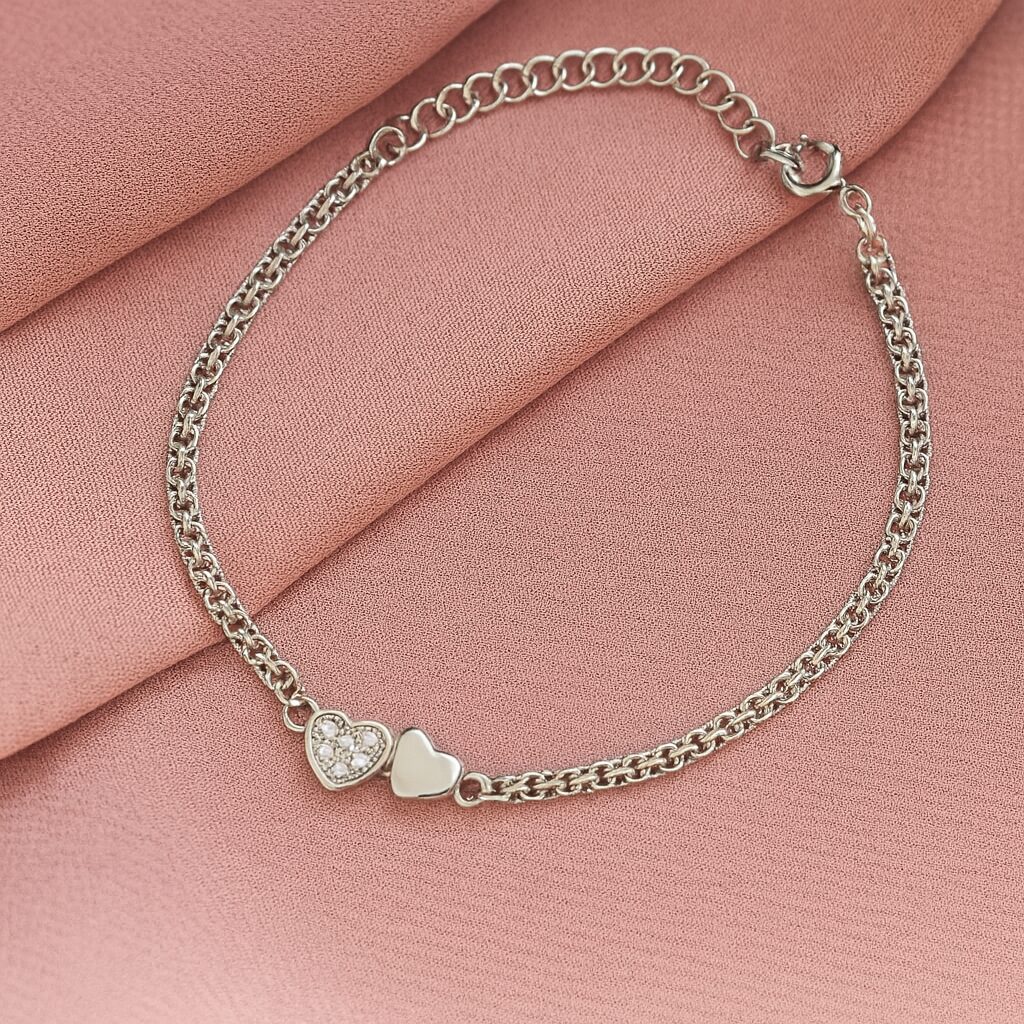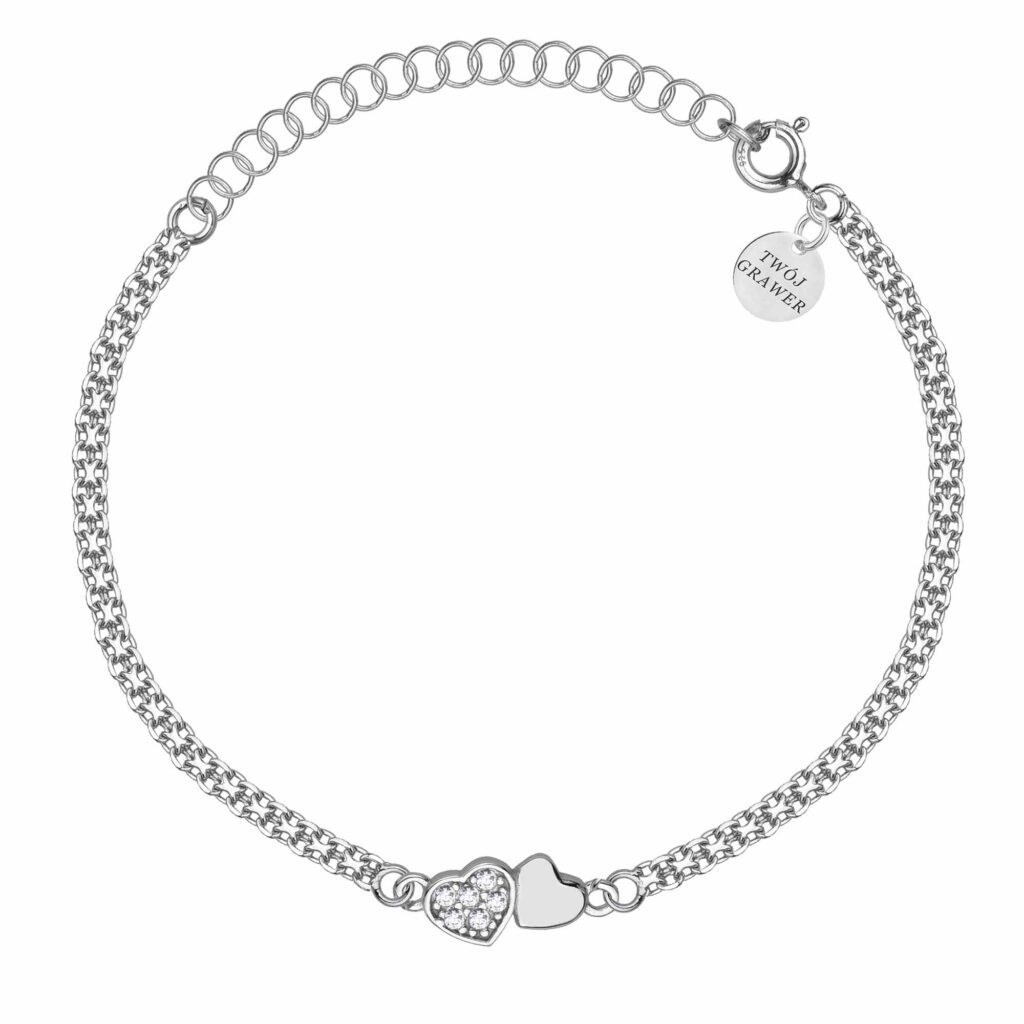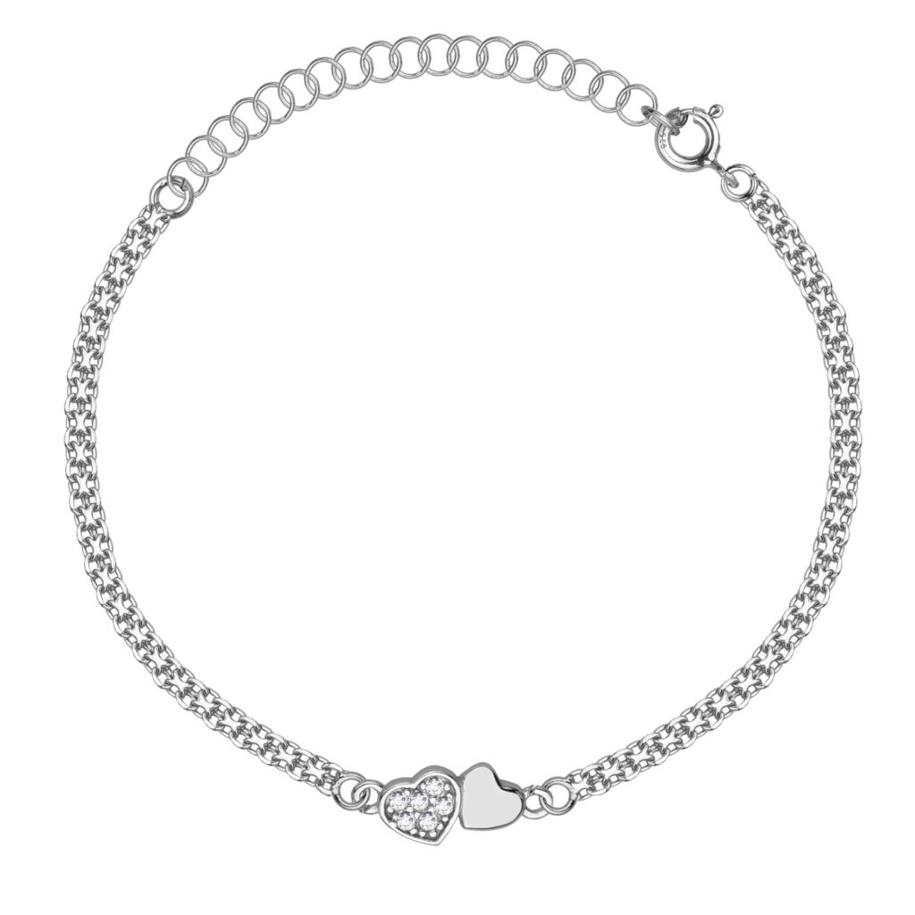 Srebrna Rodowana Bransoletka Bismark z Podwójnym Sercem i Cyrkoniami 925 – 2,1 mm