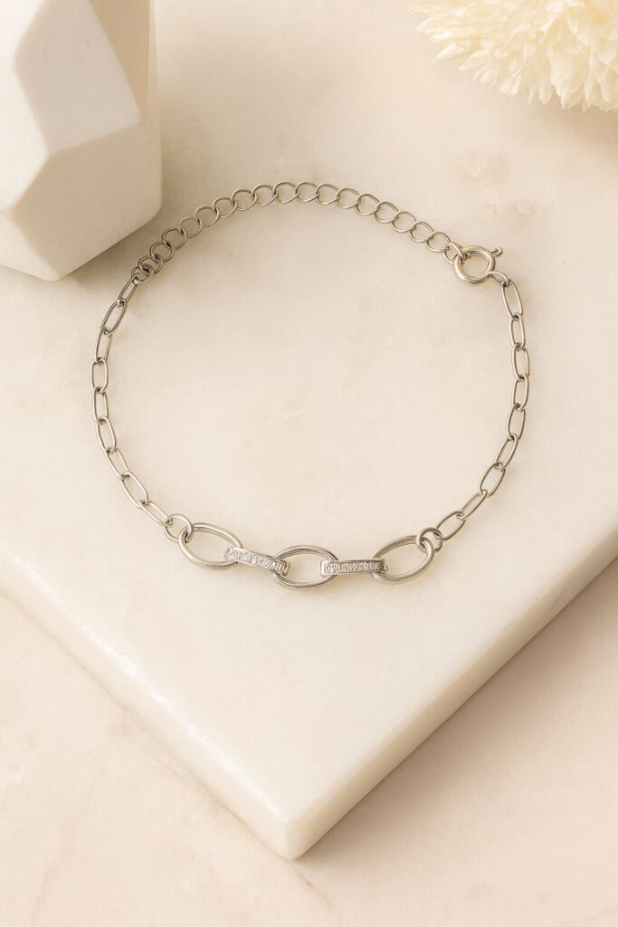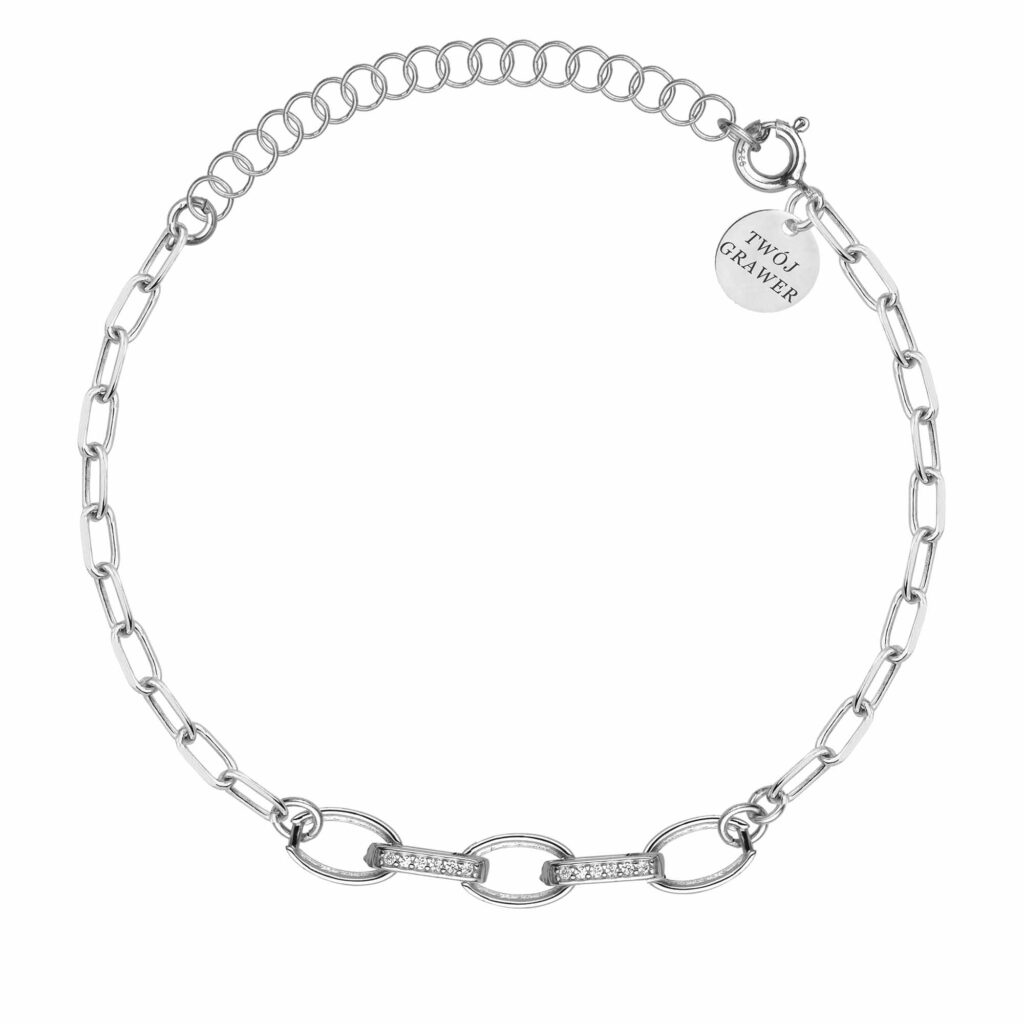 Bransoletka posiada wygodne zapięcie z możliwością regulacji długości, co zapewnia idealne dopasowanie do nadgarstka. Rodowane wykończenie chroni srebro przed ciemnieniem i zarysowaniami, gwarantując długotrwały blask.