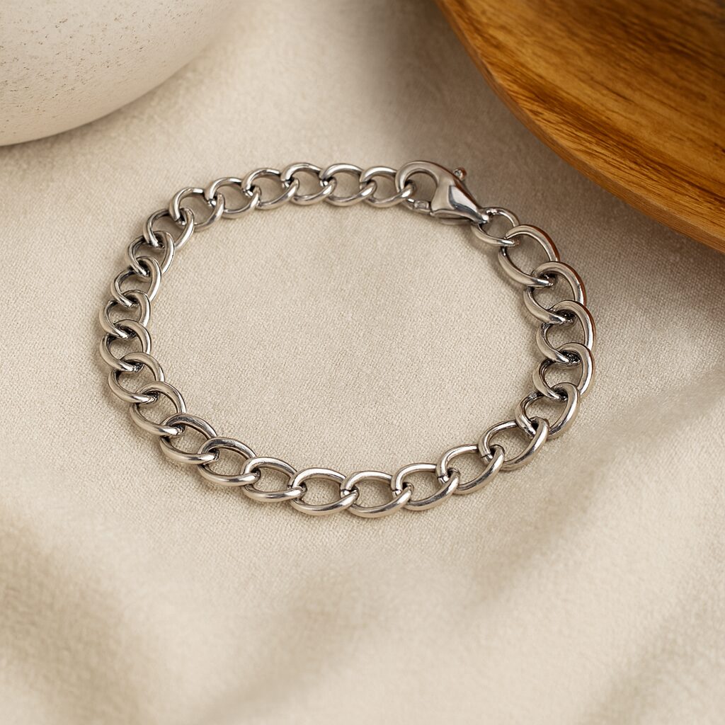 SREBRNA RODOWANA BRANSOLETKA SOCZEWKOWA 925 – 7,7MM