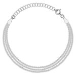 Wyjątkowo kobieca i subtelna – ta srebrna rodowana bransoletka z potrójnym łańcuszkiem to doskonałe połączenie lekkości i wyrafinowanego stylu. Trzy delikatne sploty splecione równolegle tworzą efekt gęstości i migotania, pięknie odbijając światło. Szerokość 4,2 mm sprawia, że bransoletka wygląda okazale, ale nie przytłacza – jest idealnym wyborem dla kobiet ceniących elegancję w minimalistycznym wydaniu. Sprawdzi się zarówno jako codzienna ozdoba, jak i elegancki dodatek do wieczorowych stylizacji.