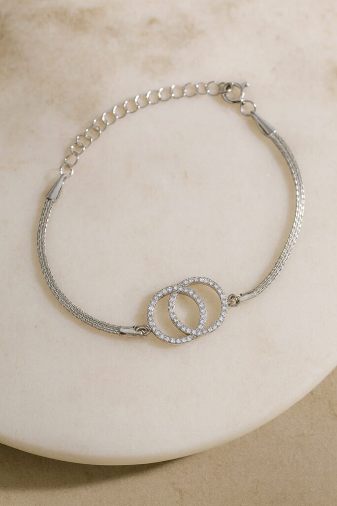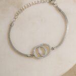 Srebrna rodowana bransoletka z przeplatanymi kółkami wysadzanymi cyrkoniami, wykonana z najwyższej jakości srebra próby 925, to wyjątkowa propozycja dla osób poszukujących subtelnej, a jednocześnie efektownej biżuterii. Ozdobne kółka symbolizują nierozerwalne więzi i relacje, a ich blask podkreślony przez cyrkonie dodaje całości eleganckiego charakteru. Pleciony splot o szerokości 1,5 mm zapewnia wyjątkową trwałość i wygodę noszenia.