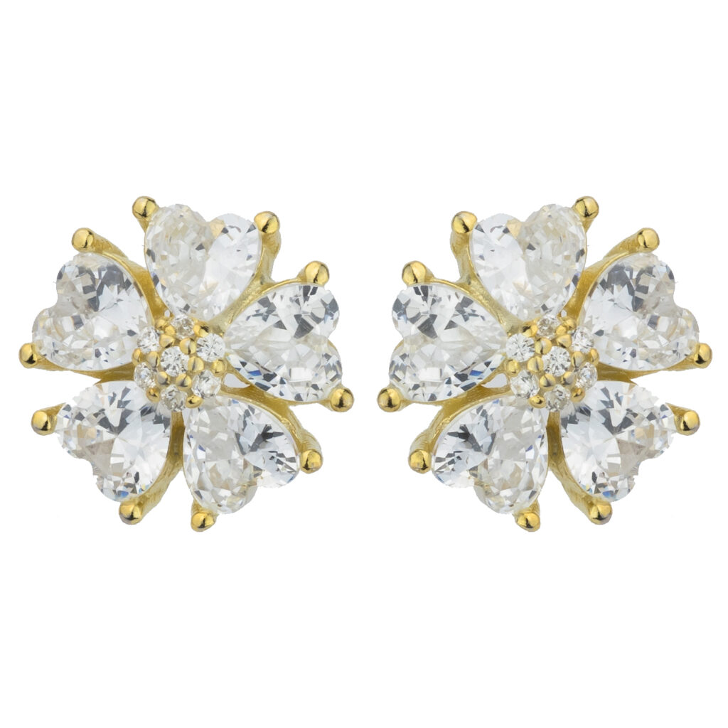 Srebrne Pozłacane Kolczyki Kwiat z Białymi Cyrkoniami 925 585