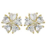 Efektowne kolczyki w kształcie kwiatu, wykonane z wysokiej jakości srebra próby 925 i pokryte warstwą złota 585, urzekają blaskiem i elegancją. Każdy płatek tworzą sercowate, szlifowane cyrkonie o krystalicznej przejrzystości, które pięknie odbijają światło. Centralny punkt kolczyka to kompozycja drobnych, lśniących cyrkonii, nadająca całości luksusowego charakteru.