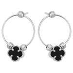 Srebrne Rodowane Kolczyki Koło z Koniczynką i Czarnym Kamieniem Naturalnym 925