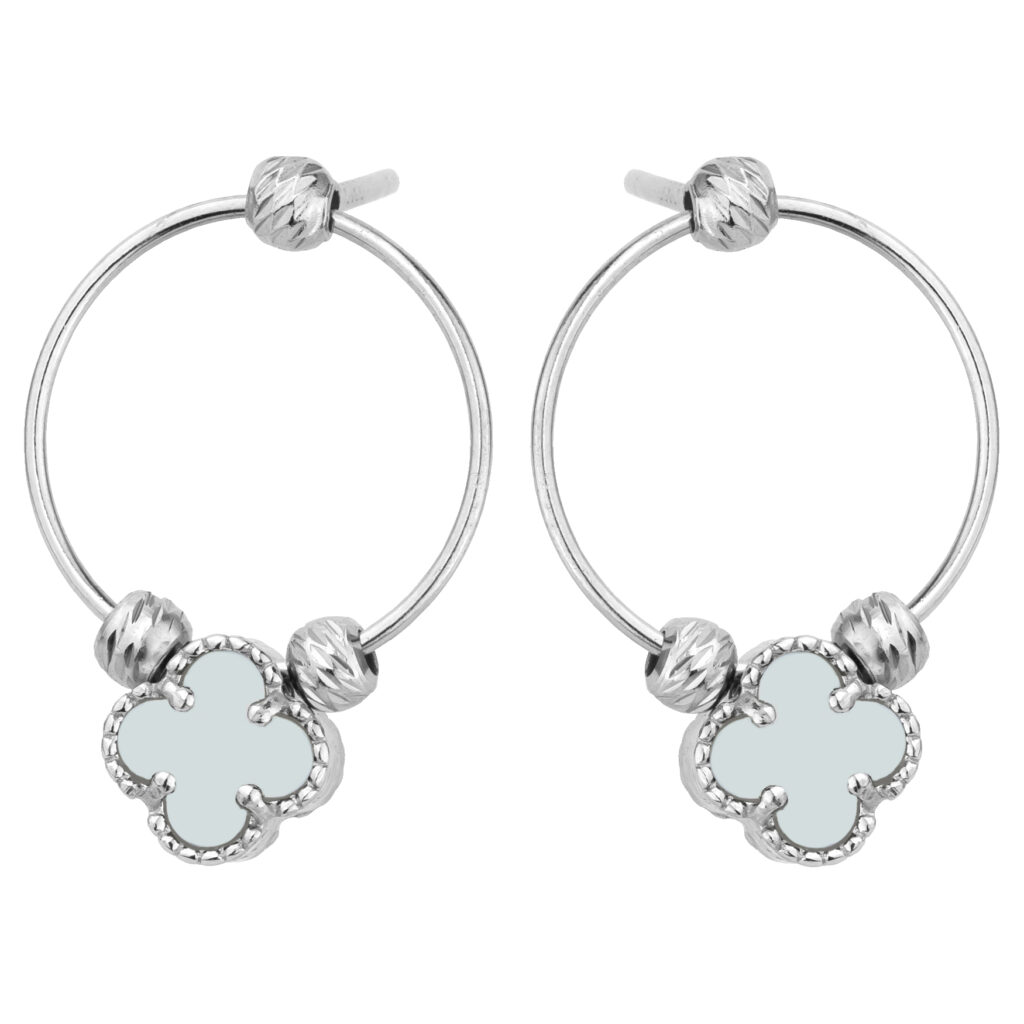 Srebrne Rodowane Kolczyki Koło z Koniczynką i Jasnym Kamieniem Naturalnym 925