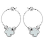 Stylowe kolczyki w formie delikatnych kół z ozdobną zawieszką w kształcie koniczynki z jasnym kamieniem naturalnym to idealna propozycja dla kobiet ceniących subtelny blask i elegancję z nutą symboliki. Wykonane ze srebra próby 925 i pokryte warstwą rodu, urzekają jakością wykonania i szlachetnym wykończeniem. Symbol szczęścia w delikatnej odsłonie sprawia, że biżuteria nabiera wyjątkowego znaczenia.