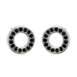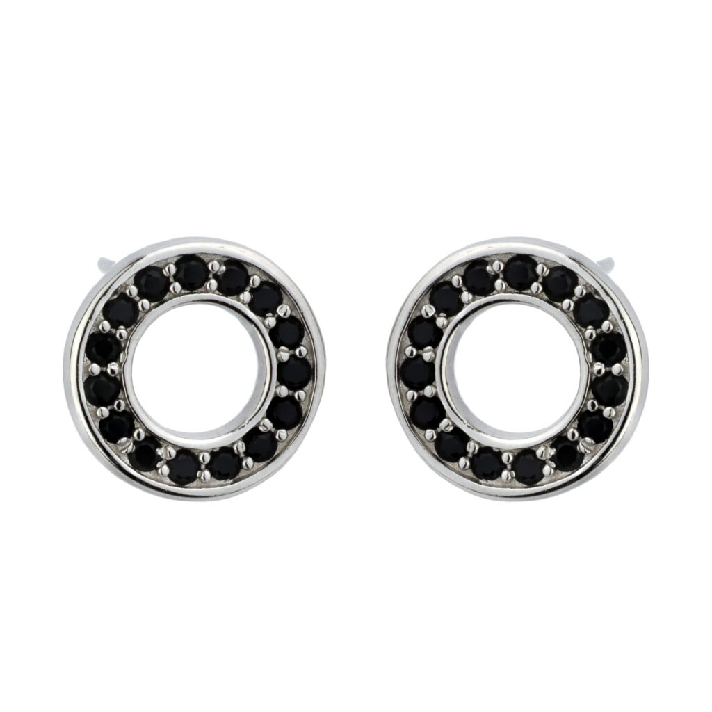 SREBRNE RODOWANE KOLCZYKI OKRĄGŁE Z CZARNYMI CYRKONIAMI 925