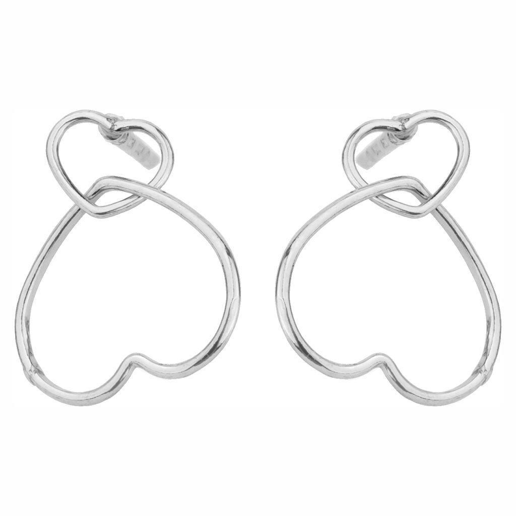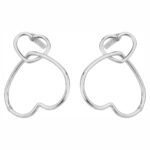 Srebrne Rodowane Kolczyki Podwójne Serce z Cyrkoniami 925