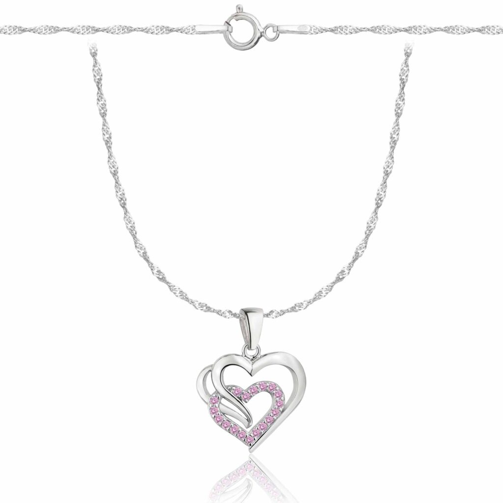Srebrny naszyjnik Singapur Serce z cyrkoniami 925 – 1,6mm