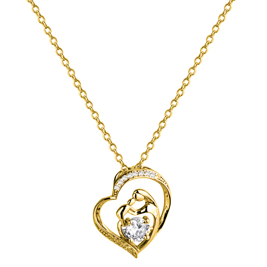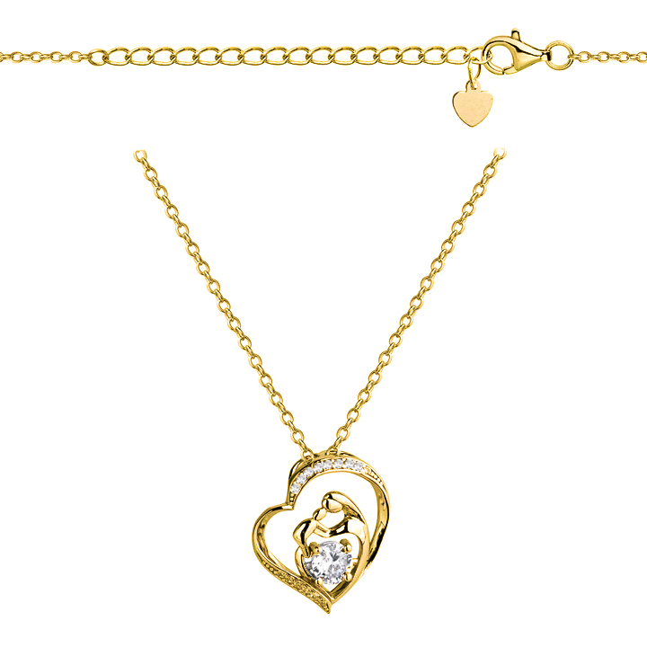 SREBRNY POZŁACANY NASZYJNIK ANKIER SERCE Z MATKĄ I DZIECKIEM ORAZ CYRKONIAMI 925 585 – 1,6MM