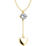 Pozłacany srebrny naszyjnik typu ankier o szerokości 0,7 mm z cyrkonią i zawieszką w kształcie serca, wykonany ze srebra próby 925 i pokryty warstwą złota 585, to wyjątkowa biżuteria, która łączy elegancję z romantycznym charakterem. Centralnie osadzona cyrkonia w klasycznym szlifie pięknie odbija światło, a wypukłe, lśniące serduszko subtelnie dopełnia całą kompozycję.