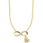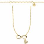Srebrny rodowany naszyjnik typu ankier o szerokości 0,7 mm z symbolem nieskończoności i zawieszką w kształcie serduszka, wykonany z najwyższej jakości srebra próby 925, to romantyczna i elegancka biżuteria z przesłaniem. Nieskończoność, częściowo wysadzana lśniącymi cyrkoniami, symbolizuje trwałość uczuć, a serduszko z cyrkoniowym wypełnieniem podkreśla jej emocjonalny charakter.