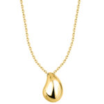 Pozłacany srebrny naszyjnik z zawieszką w kształcie kropla, wykonany z najwyższej jakości srebra próby 925 i pokryty trwałą warstwą złota 585, to subtelna biżuteria, która zachwyca prostotą formy i ponadczasowym stylem. Gładka zawieszka w kształcie kropla emanuje delikatnością i symboliką, a klasyczny splot ankier doskonale uzupełnia jej elegancki charakter.
