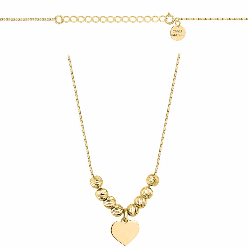 SREBRNY POZŁACANY NASZYJNIK KOSTKA Z SERDUSZKIEM I OZDOBNYMI KULKAMI 925 585 – 0,6MM