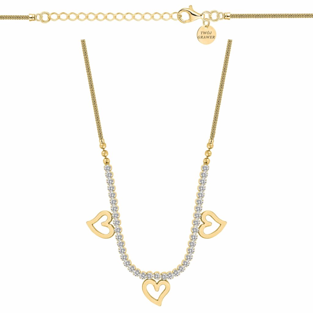 SREBRNY POZŁACANY NASZYJNIK LISI OGON Z SERDUSZKAMI I CYRKONIAMI 925 585 – 1,9MM