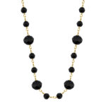 Srebrny Pozłacany Naszyjnik z Czarnymi Kamieniami Naturalnymi 925 585 – 1,1MM