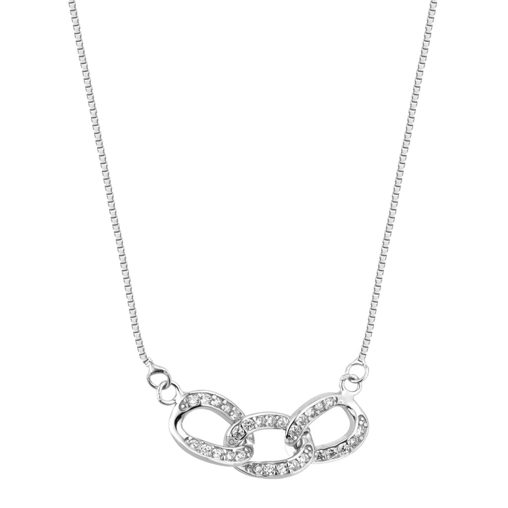 Delikatny splot typu kostka o szerokości 0,8 mm pięknie układa się na dekolcie, a precyzyjnie osadzone cyrkonie odbijają światło, tworząc efekt luksusowego blasku. Rodowane srebro zabezpiecza powierzchnię przed matowieniem i dodaje biżuterii trwałości oraz elegancji.