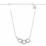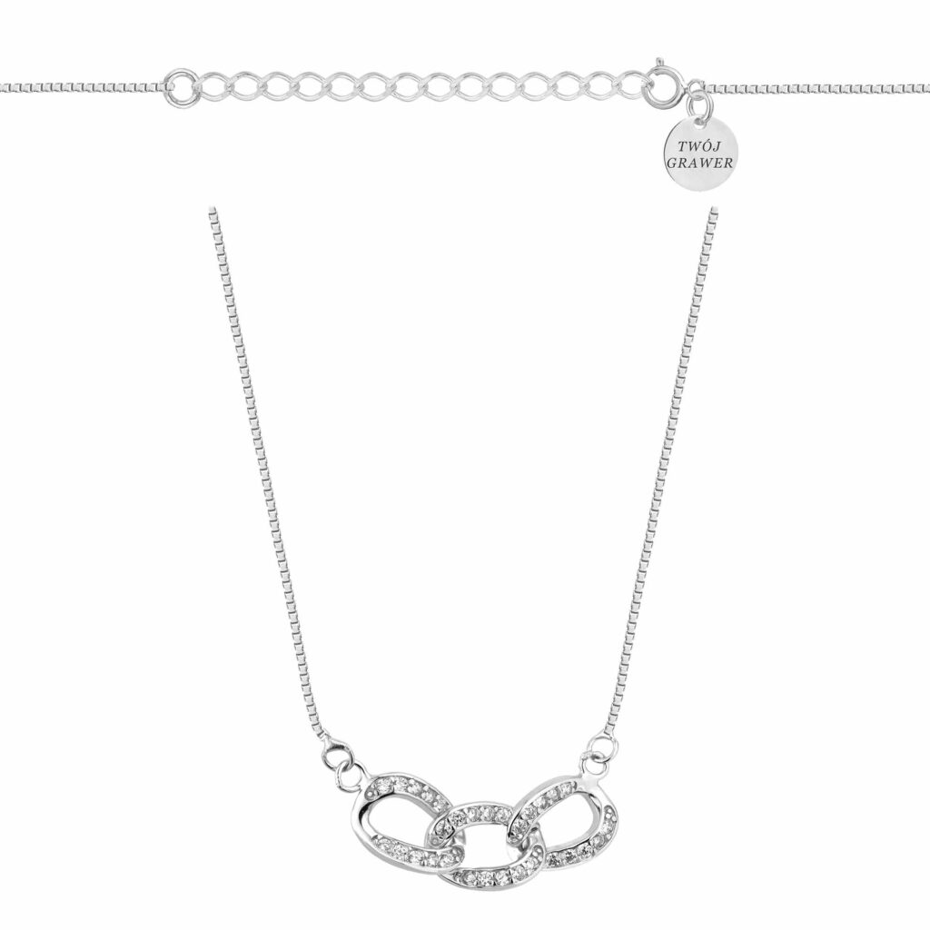 Srebrny rodowany naszyjnik typu kostka o szerokości 0,8 mm z ozdobnymi ogniwami wysadzanymi cyrkoniami, wykonany z najwyższej jakości srebra próby 925, to biżuteria o subtelnej formie i eleganckim wykończeniu. Trzy połączone ze sobą, błyszczące ogniwa stanowią centralny element naszyjnika, przyciągając wzrok i nadając mu nowoczesny charakter.