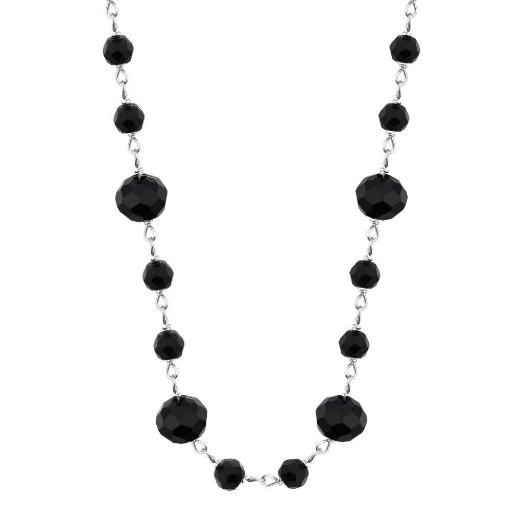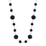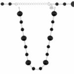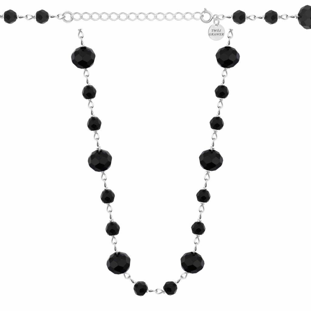 Srebrny Rodowany Naszyjnik z Czarnymi Kamieniami Naturalnymi 925 – 1,1MM