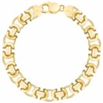 Pozłacana srebrna bransoletka Etruska próby 925 585 o szerokości 11,2 mm to luksusowy dodatek, który łączy solidność srebra z oszałamiającym, złotym blaskiem. Splot Etruski, znany ze swoich misternie zdobionych ogniw, tworzy elegancką strukturę, która subtelnie mieni się na nadgarstku, dodając każdej stylizacji wyrafinowanego charakteru. Proces pozłacania nadaje bransoletce dodatkowej elegancji, czyniąc ją idealnym wyborem zarówno na co dzień, jak i na bardziej formalne okazje.