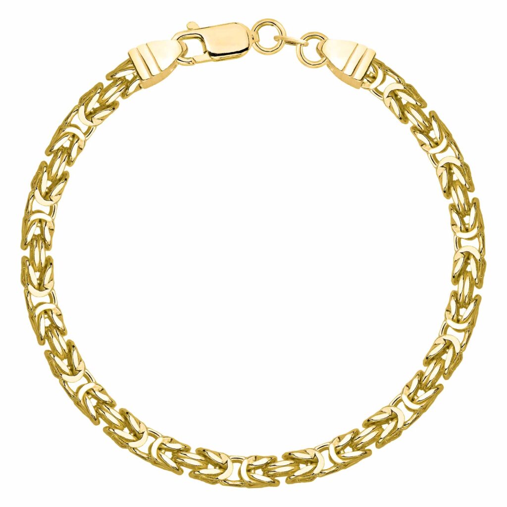 Pozłacana srebrna bransoletka królewska próby 925 585 o szerokości 4,5 mm to luksusowy i elegancki dodatek, który łączy solidność klasycznego srebra z pięknym, złotym blaskiem. Splot królewski, składający się z misternie splecionych ogniw, tworzy bogatą, solidną strukturę, która subtelnie układa się na nadgarstku, dodając każdej stylizacji szlachetnego charakteru. Pozłocenie nadaje bransoletce dodatkowej elegancji, czyniąc ją idealnym wyborem zarówno na co dzień, jak i na bardziej formalne okazje, kiedy chcesz dodać swojej stylizacji luksusowego akcentu.