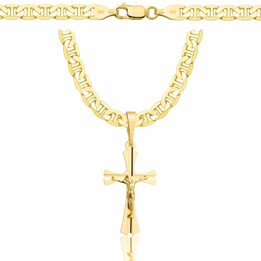 Pozłacany srebrny łańcuszek Gucci z krzyżykiem 925 585 – 5,5mm