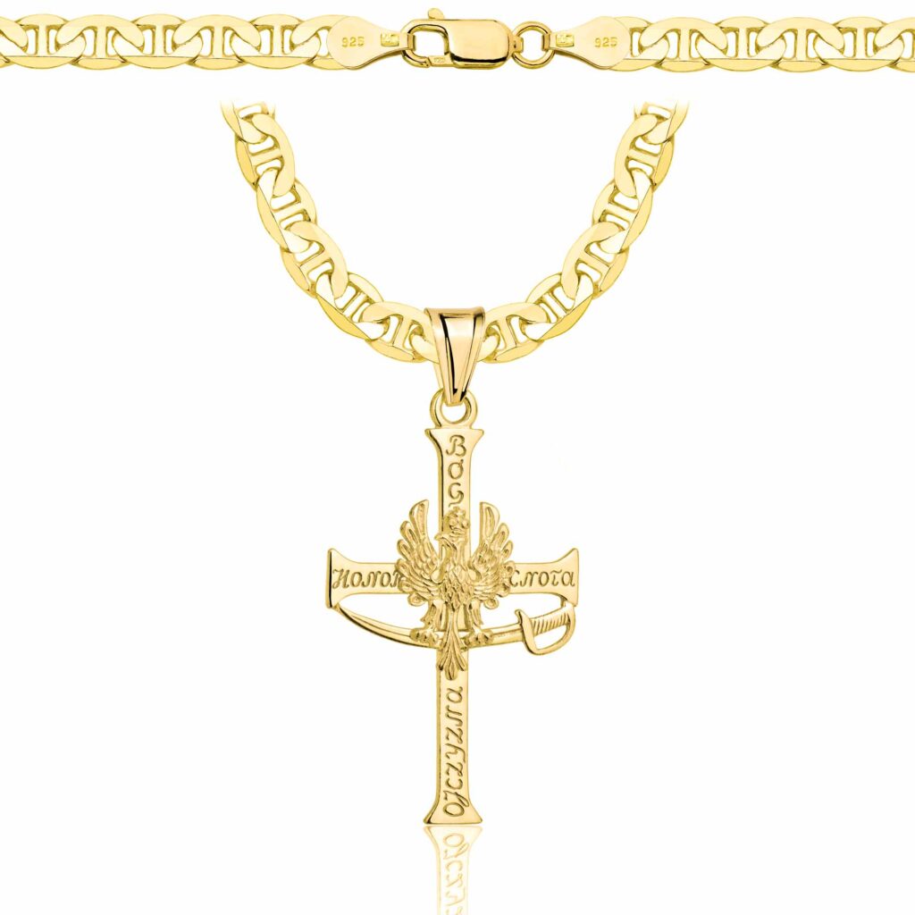 Pozłacany srebrny łańcuszek Gucci z krzyżykiem 925 585 – 5,5mm