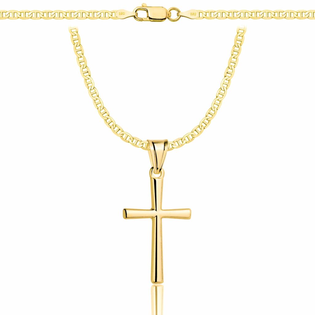 Pozłacany srebrny łańcuszek Gucci z krzyżykiem 925 585 – 2,6mm