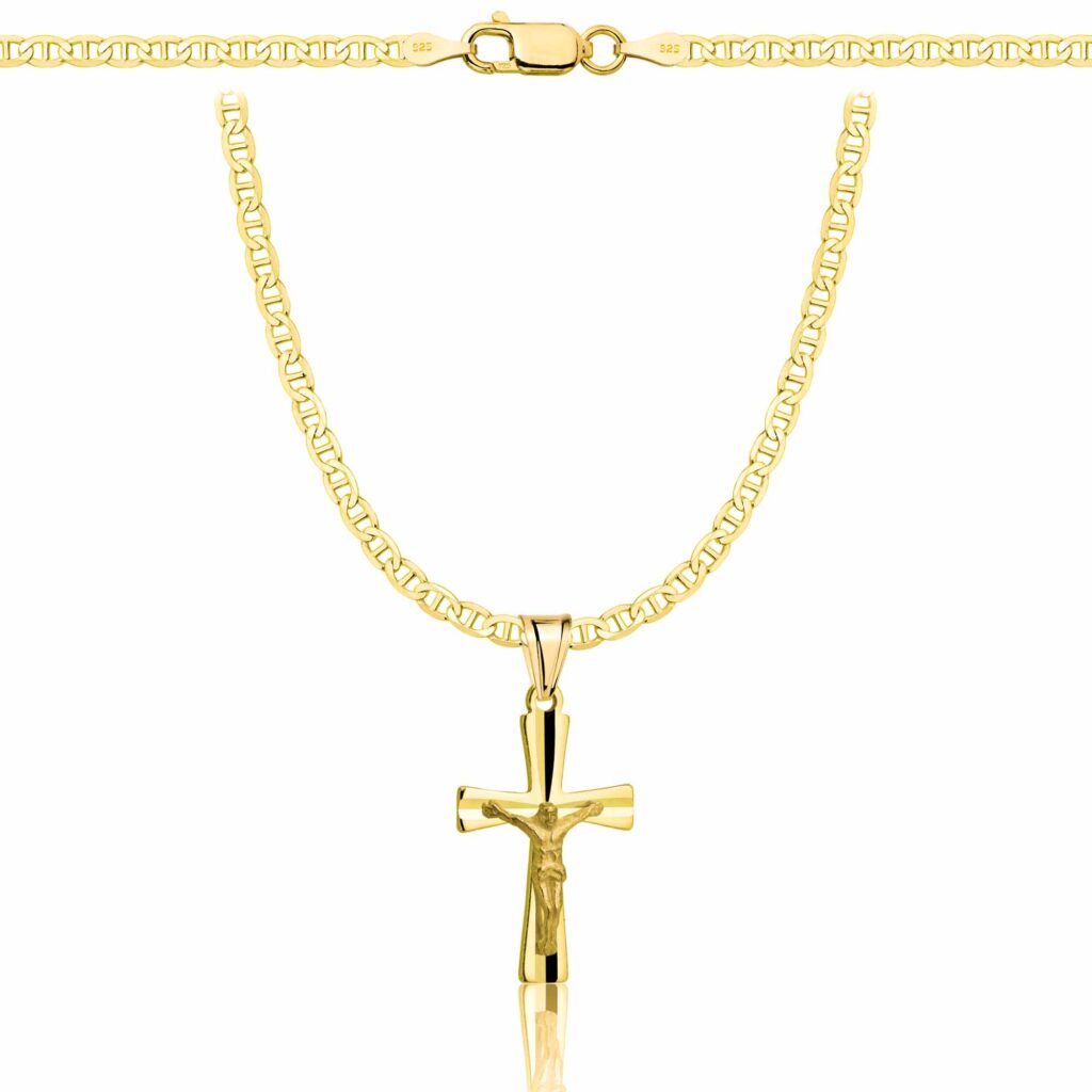 Pozłacany srebrny łańcuszek Gucci z krzyżykiem 925 585 – 2,6mm