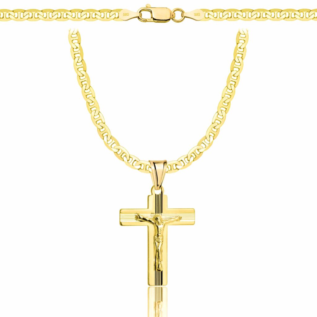 POZŁACANY SREBRNY ŁAŃCUSZEK GUCCI Z KRZYŻYKIEM 925 585 – 3,5MM