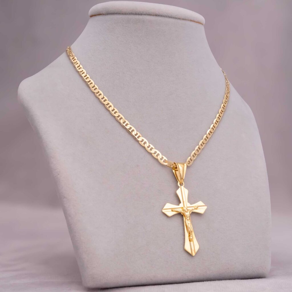 Pozłacany srebrny łańcuszek Gucci z krzyżykiem 925 585 – 3,5mm
