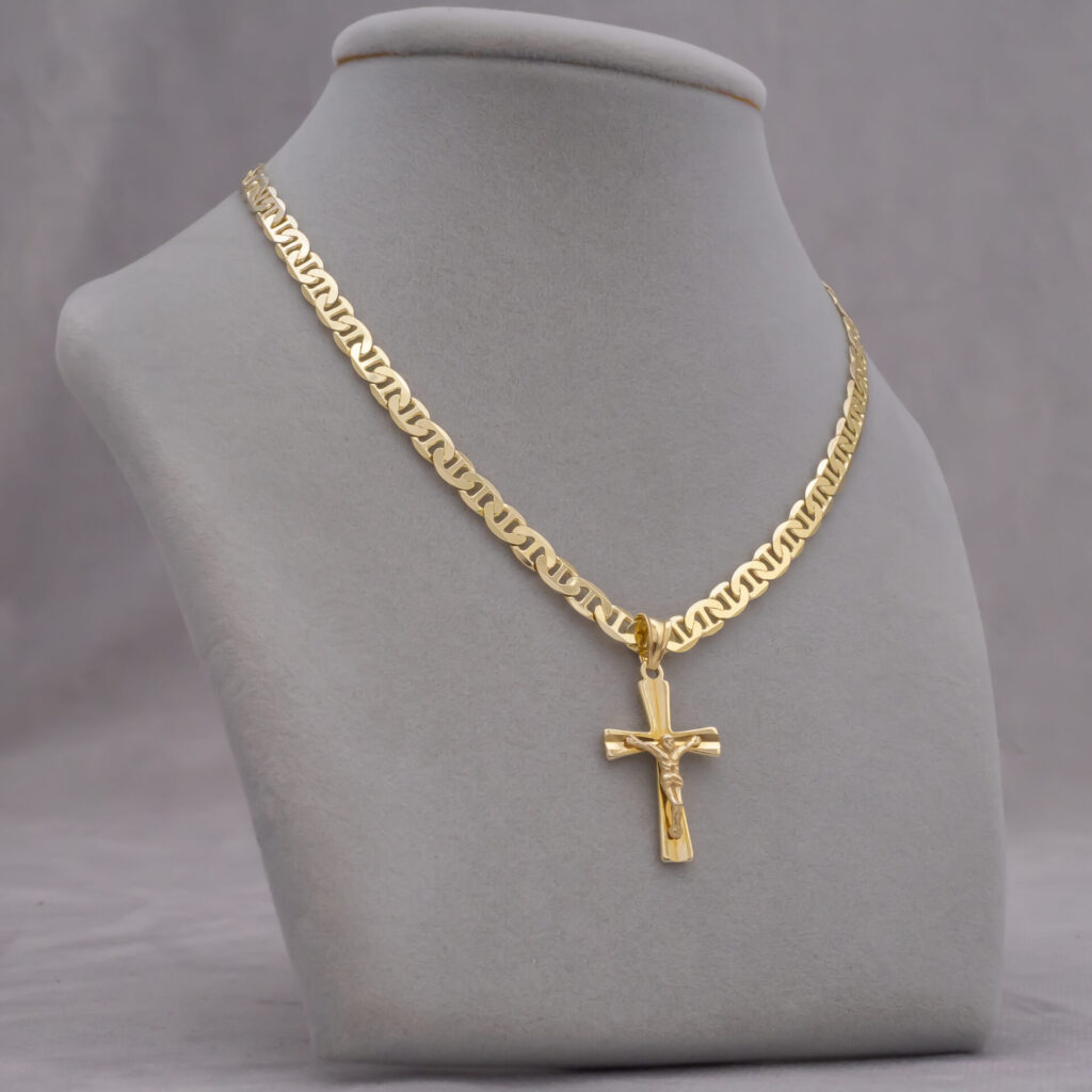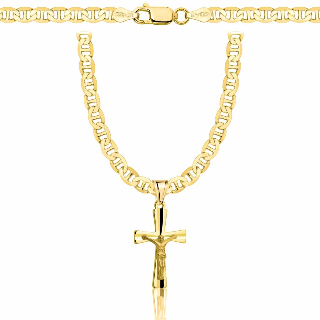 Pozłacany srebrny łańcuszek Gucci z krzyżykiem 925 585 – 4,5mm