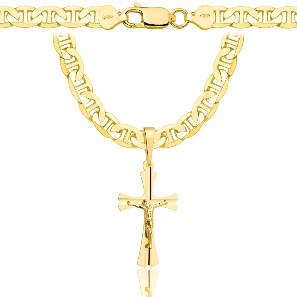Pozłacany srebrny łańcuszek Gucci z krzyżykiem 925 585 – 6,5mm