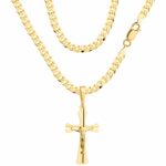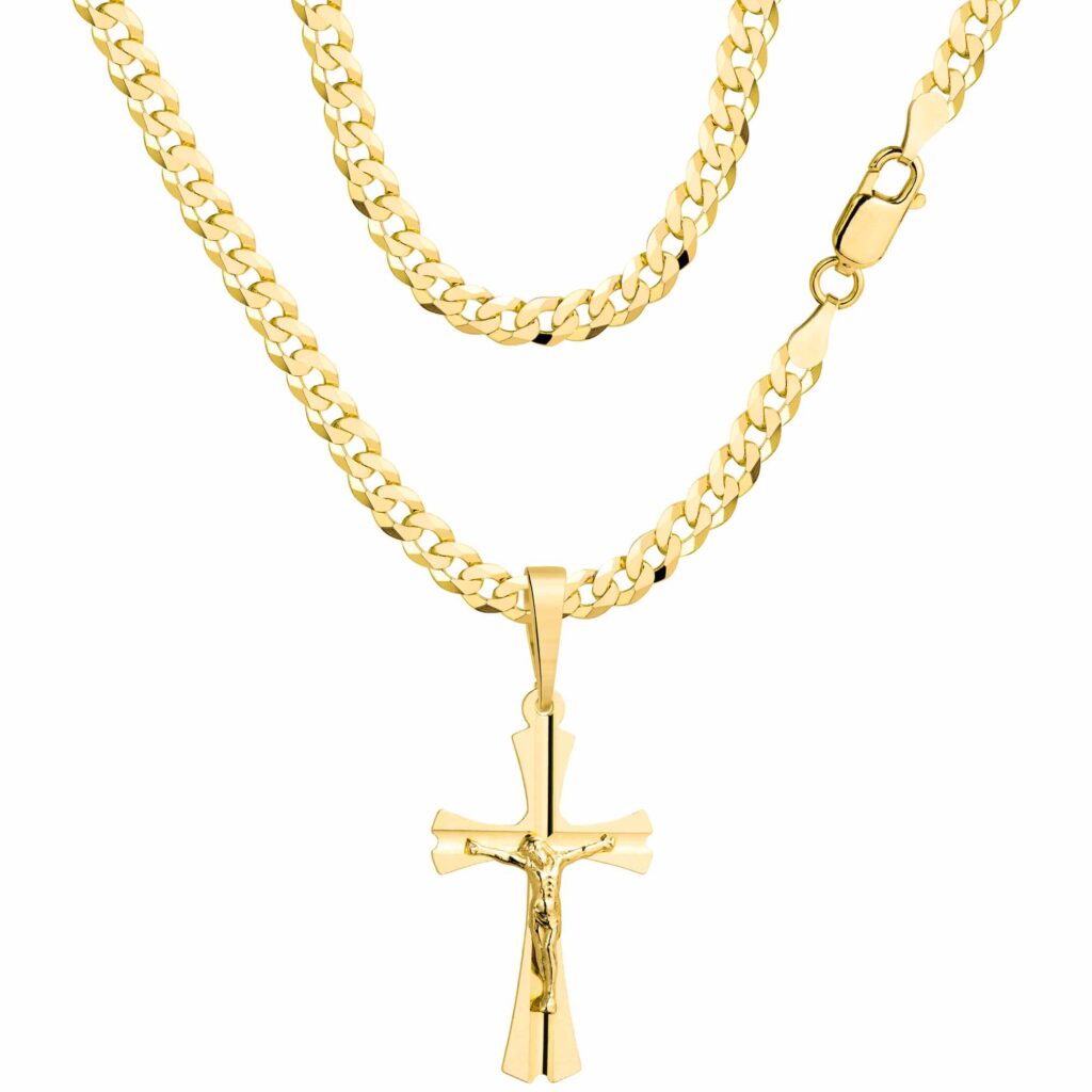 Pozłacany srebrny łańcuszek Pancerka próby 925 585 o szerokości 3,8 mm z krzyżykiem to doskonały wybór dla osób, które pragną połączyć elegancję z osobistym znaczeniem. Klasyczny splot Pancerki charakteryzuje się wyjątkową estetyką oraz solidnością, co czyni go idealnym dodatkiem zarówno na co dzień, jak i na specjalne okazje. Krzyżyk, zawieszony na łańcuszku, dodaje biżuterii głębszego znaczenia, będąc symbolem wiary i ochrony.