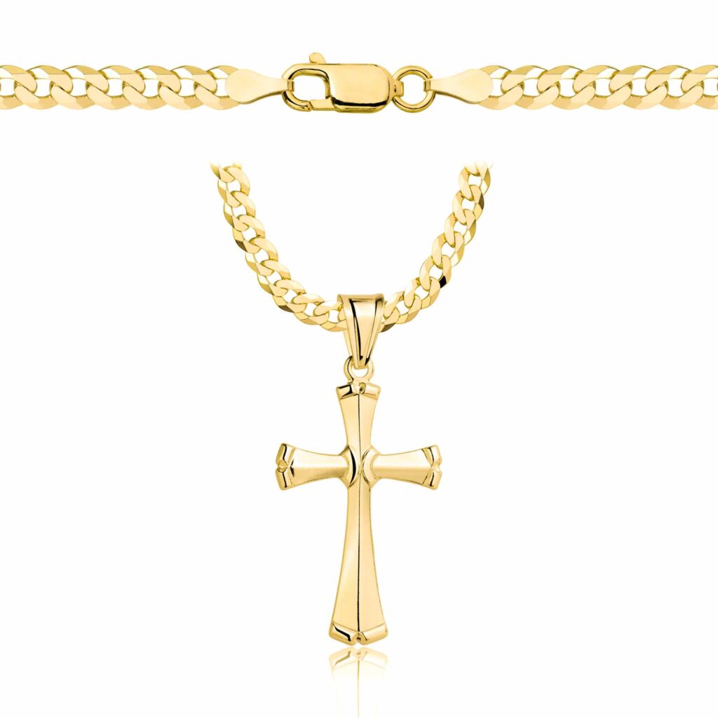 POZŁACANY SREBRNY ŁAŃCUSZEK PANCERKA Z KRZYŻYKIEM 925 585 – 3,8MM