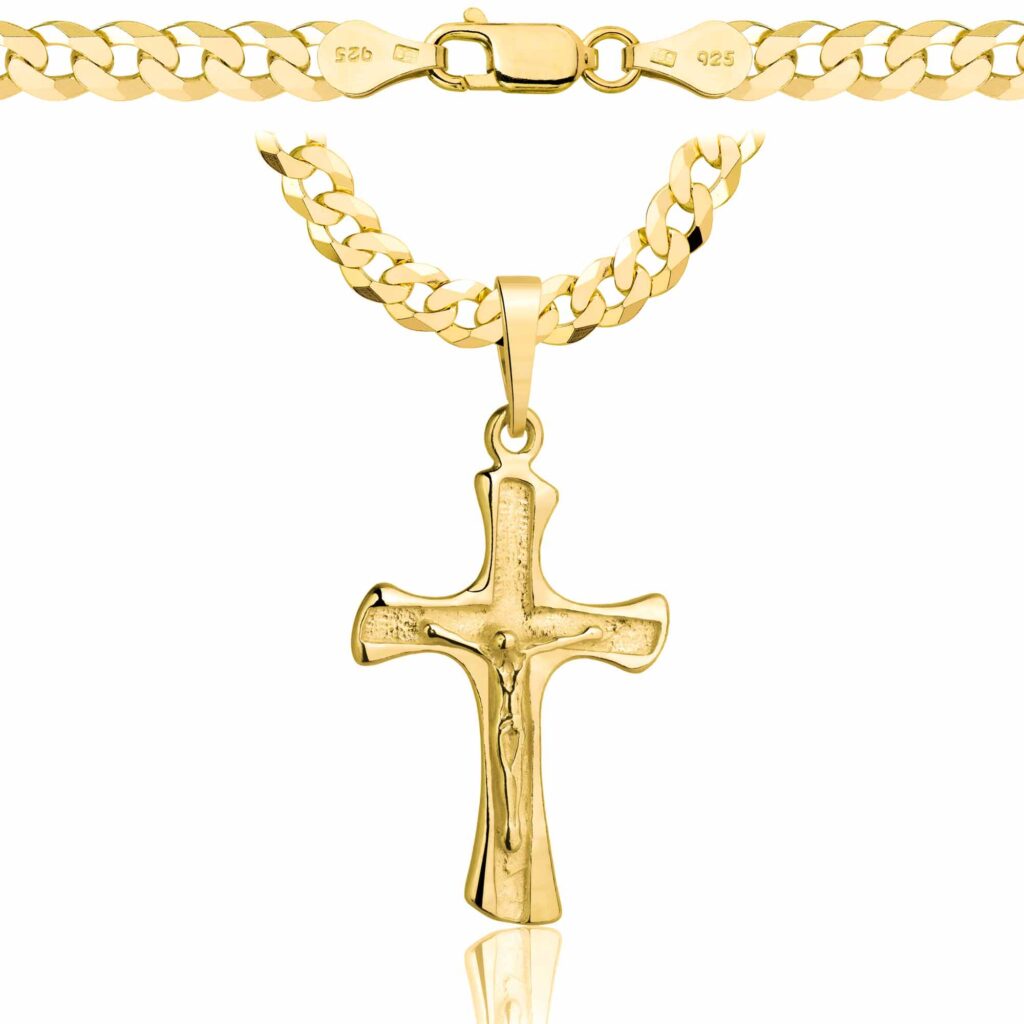 Pozłacany srebrny łańcuszek Pancerka z krzyżykiem 925 585 – 5,6mm