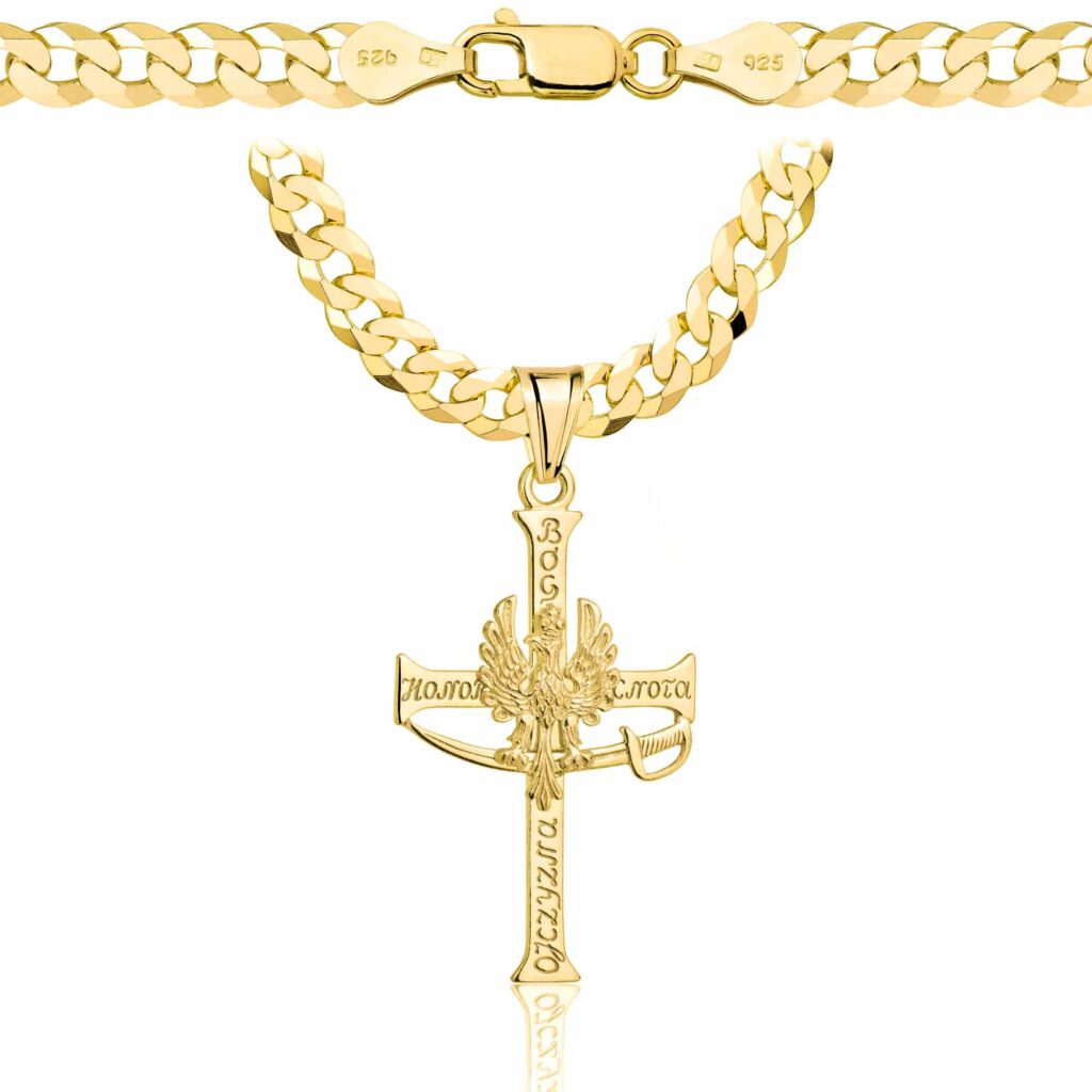 POZŁACANY SREBRNY ŁAŃCUSZEK PANCERKA Z KRZYŻYKIEM 925 585 – 5,6MM