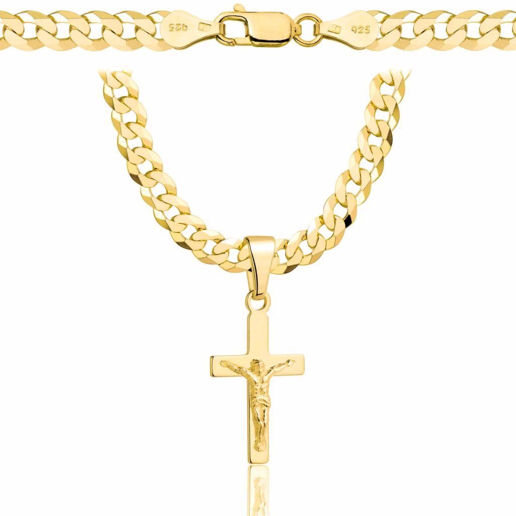Pozłacany srebrny łańcuszek Pancerka z krzyżykiem 925 585 – 5,6mm