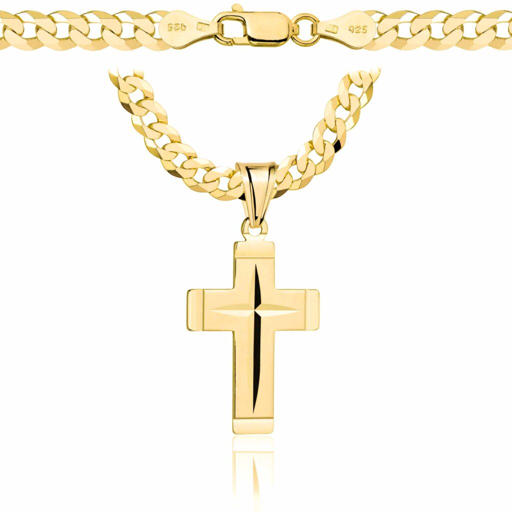 Pozłacany srebrny łańcuszek Pancerka z krzyżykiem 925 585 – 5,6mm