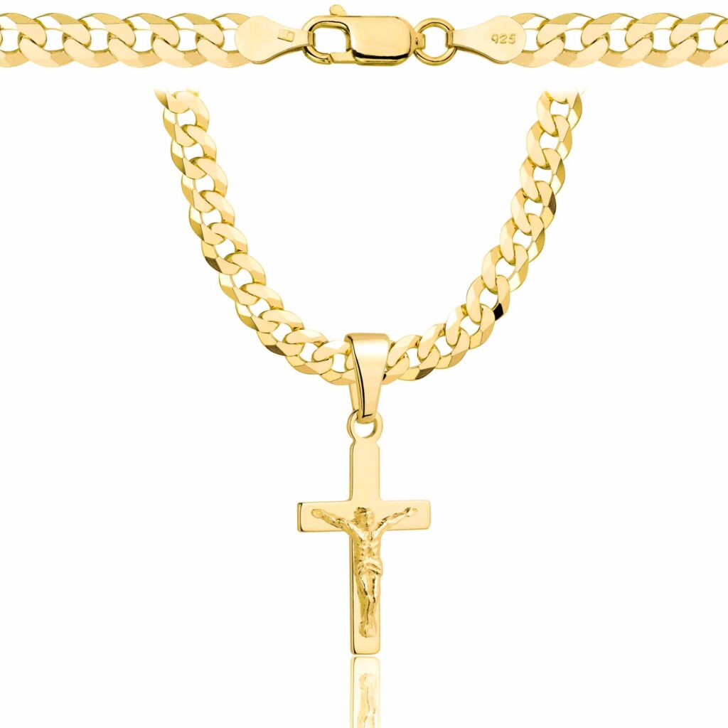 Pozłacany srebrny łańcuszek Pancerka z krzyżykiem 925 585 – 5mm
