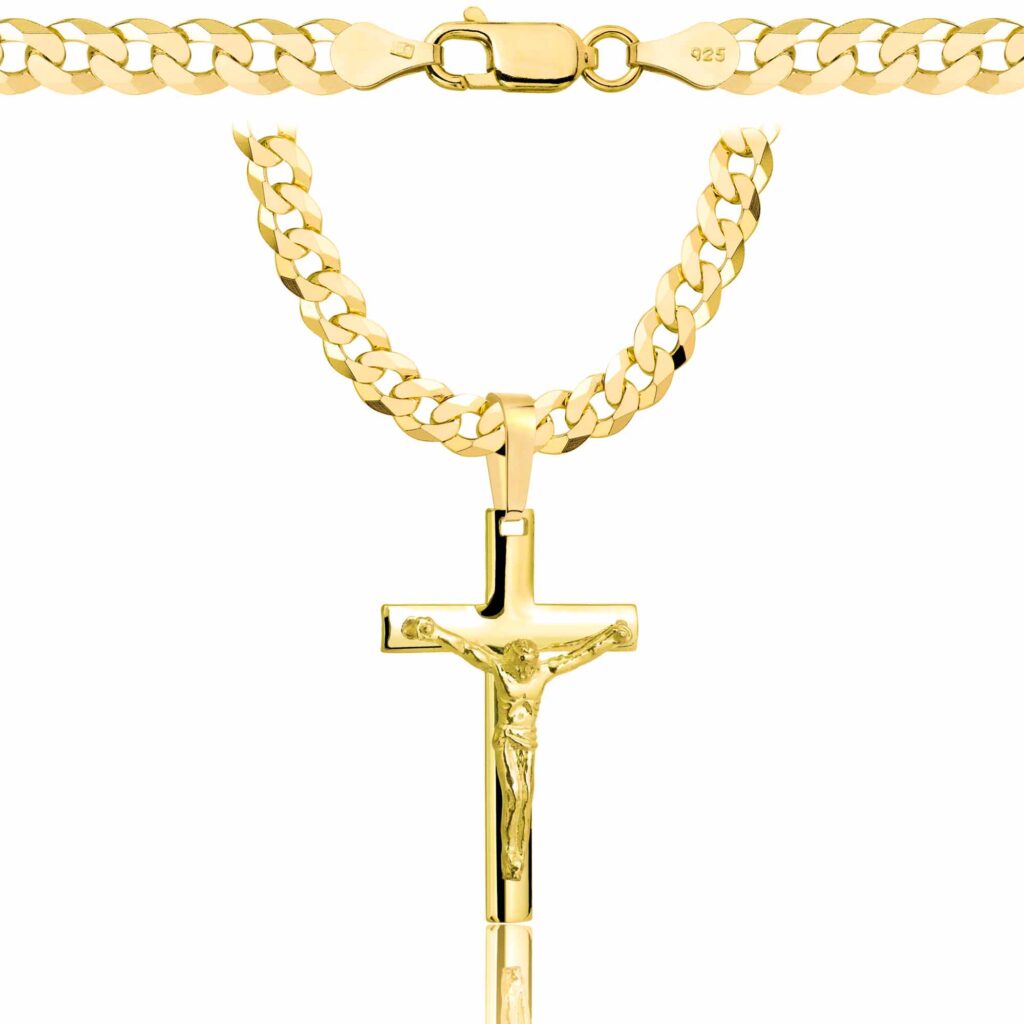 POZŁACANY SREBRNY ŁAŃCUSZEK PANCERKA Z KRZYŻYKIEM 925 585 – 5MM