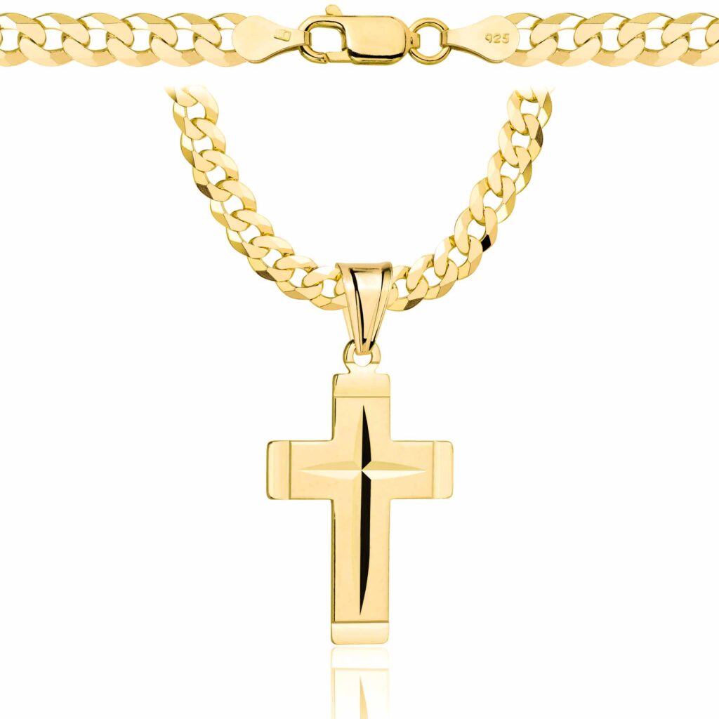 Pozłacany srebrny łańcuszek Pancerka z krzyżykiem 925 585 – 5mm