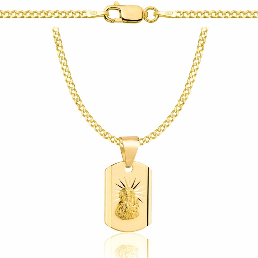 Pozłacany srebrny łańcuszek pancerka z medalikiem 925 585 – 2 mm